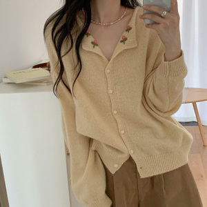 韩系洋气钩花毛衣开衫女2025秋季新款慵懒风温柔甜美减龄针织上衣