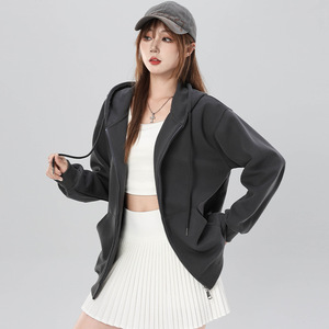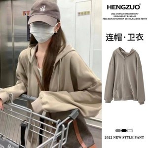 仿棉华棉复合 灰色卫衣外套女春秋款2025新款秋季连帽韩系慵懒薄