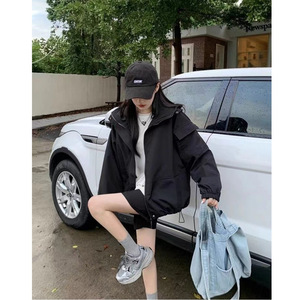 休闲宽松连帽冲锋衣外套女春秋季新款棒球服运动夹克韩版百搭上衣