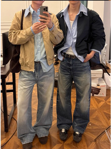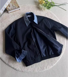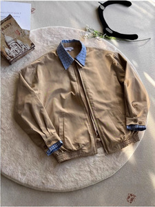 新款假两件miu系卡其藏蓝哈灵顿夹克外套学院风cleanfit老钱风潮
