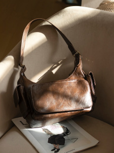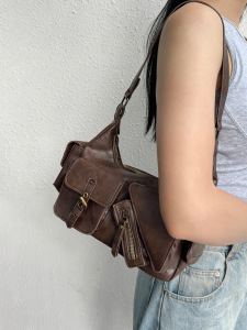 美式复古百搭机车包包2025小众设计单肩腋下包甜酷辣妹中古手提包