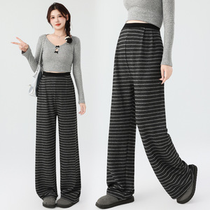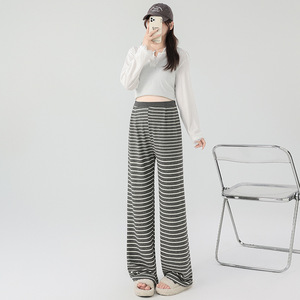 现货孕妇裤子秋季外穿条纹慵懒休闲裤2025新款直筒阔腿孕妇长裤