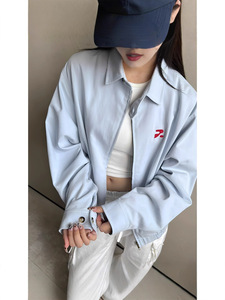 跨境休闲百搭翻领衬衫夹克 国潮牌潮流秋季美式复古拉链情侣外套