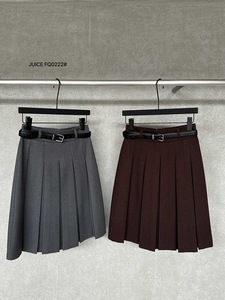 【JUICE】爆款miu系高腰复古百搭半身裙女秋季百褶裙(配腰带)