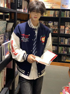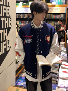 美式复古学院风棒球服外套男女秋冬潮牌重磅刺绣撞色设计夹克上衣
