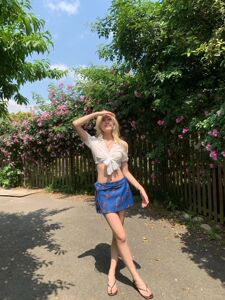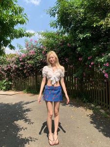 套装女2025夏季新款欲风绑带短款衬衫上衣高腰蓝色碎花半身裙潮