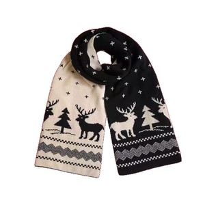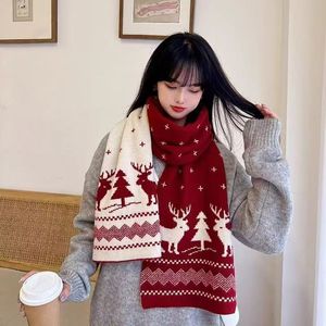 红色圣诞小鹿新年针织冬季围巾百搭情侣保暖毛线学生可爱围脖礼物