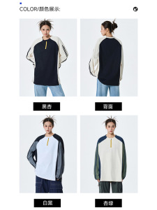 大牌长袖t恤女春秋2025新款美式潮牌套头衫半拉链速干情侣上衣男