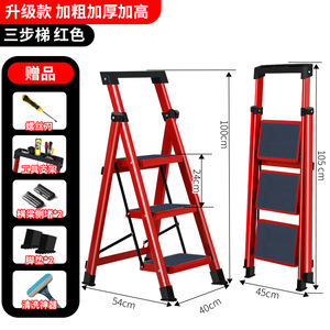 红色三步梯【带工具盒加宽加厚踏板】