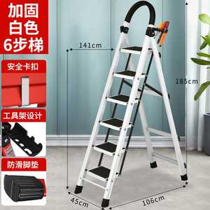 白色六步梯【带工具盒加宽加厚踏板】