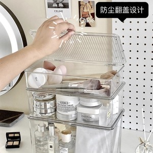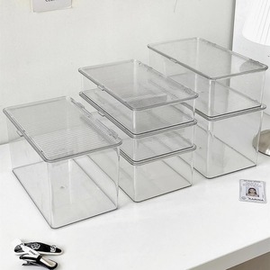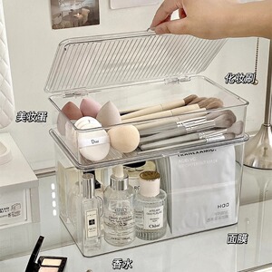 带盖亚克力透明收纳盒桌面整理盒大容量防尘办公室书桌文具收纳箱