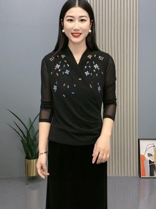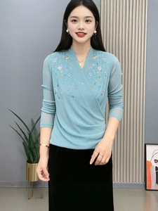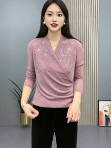 一件代发抖音芳雅直播同款原版新款V领烫钻气质长袖女洋气打底衫