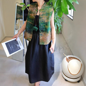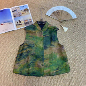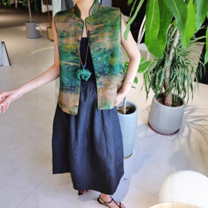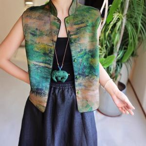 2025早秋款新中式时尚设计正反两穿山水画香云纱马甲百搭无袖上衣