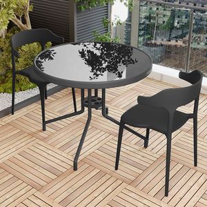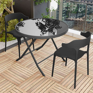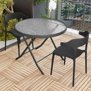 80cm黑玻组装圆桌+2椅子