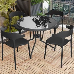70cm黑玻组装圆桌+4椅子