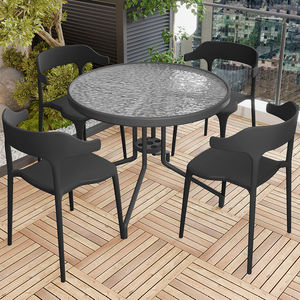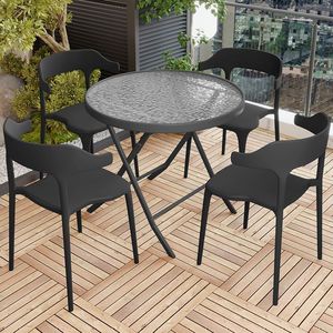 80cm黑玻组装圆桌+4椅子