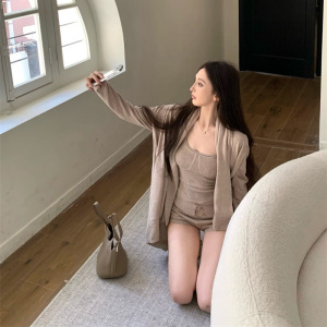 2025实拍时髦~慵懒感吊带开衫裤子针织毛衣三件套装