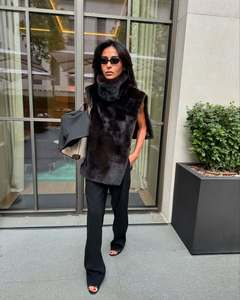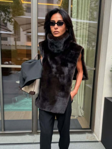 纯色高领皮草马甲欧美跨境皮草吸睛保暖新款皮草马甲