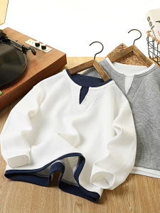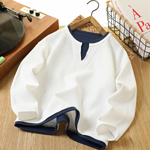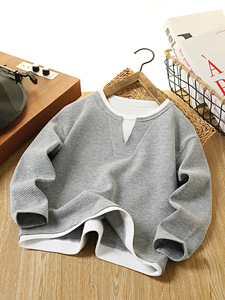 男童卫衣2025秋季新款童装上衣儿童华夫格卫衣假两件韩版时尚衣服