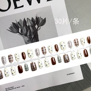 棕色系秋日格纹碎花超短梯穿戴甲韩系可爱小红书爆款美甲贴片ins