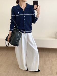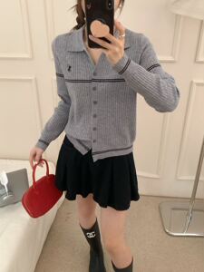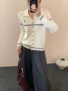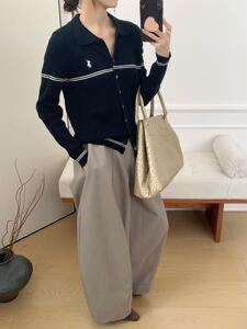2025秋冬新款气质女毛衣设计小马刺绣polo领长袖针织开衫外套上衣