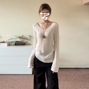 白色v领毛衣内搭打底衫女秋季2025新款慵懒风高级感修身针织上衣