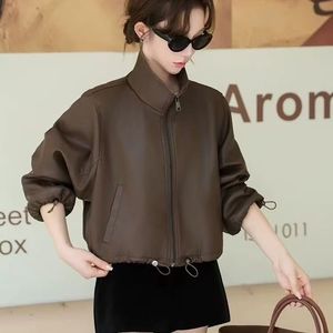 皮衣外套女2025春秋港风复古宽松短款小个子显瘦pu机车皮夹克黑色