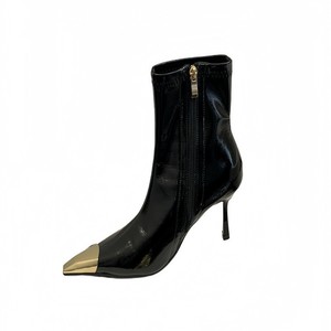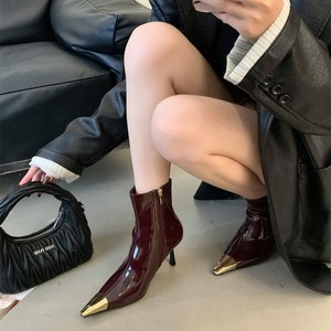 尖头高跟短靴女2025新款秋冬季黑色时装细跟法式气质加绒及踝靴子