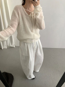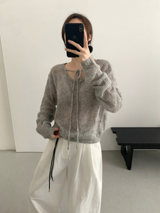 TG 韩系甜美镂空薄透针织衫女2025秋季新款领口系带显瘦毛衣25741