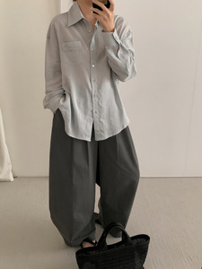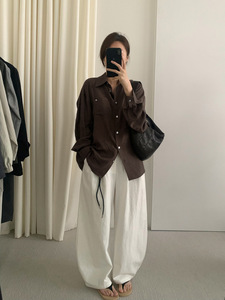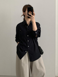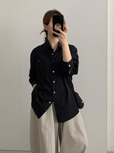 TG 经典款百搭翻领衬衫女2025秋季新款装饰扣宽松长袖薄上衣25742