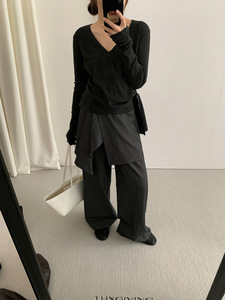 TG 气质侧系带收腰显瘦长袖纯色针织V领毛衣女2025秋季新款29025