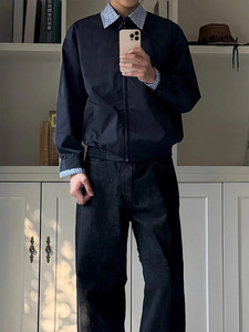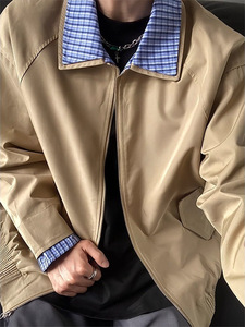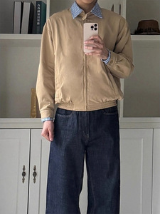 cleanfit假两件卡其色夹克男秋季哈灵顿短款宽松拼接翻领飞行外套