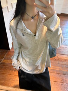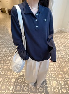 DIGM | 2025秋季极简松弛感绣花纽扣翻领POLO衫针织衫T恤女A60597