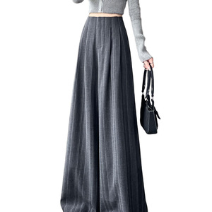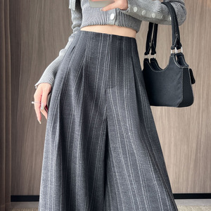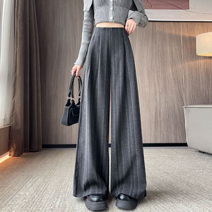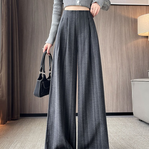 高级感条纹亚麻西装裤女秋季2025新款直筒高腰垂感休闲宽松阔腿裤