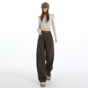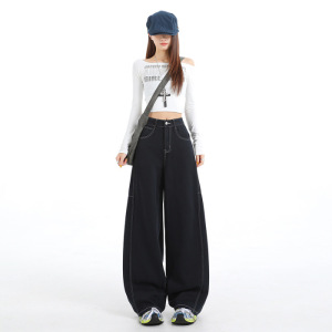 松林绿牛仔裤女爆款2025早秋新款美式显瘦宽松百搭弯刀裤子夜空蓝