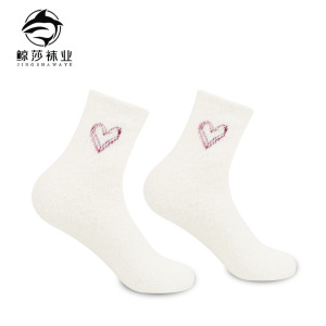 白色水貂绒袜子女秋冬加绒加厚保暖居家可爱心形黑色珊瑚绒睡眠袜