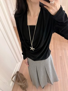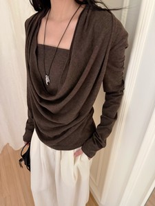 DIGM | 2025秋季极简松弛感荡领假两件羊毛针织衫毛衣女A09180