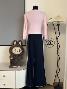 高版本~2025秋季新款半高领修身短款长袖打底衫休闲长裤套装女款