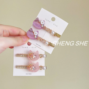 韩国甜美可爱水钻小猫发夹精致小巧珍珠侧边夹女鸭嘴夹碎发刘海夹