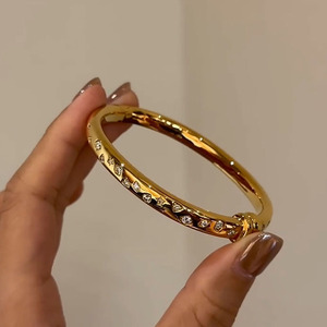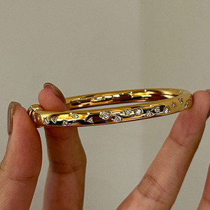 小红书爆款复古高级感亮面镶嵌闪钻素圈手镯精致手镯配饰一件代发