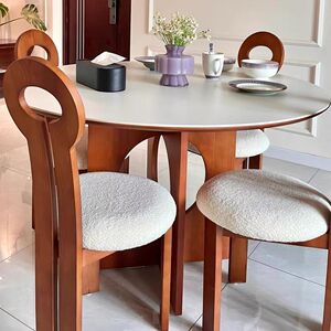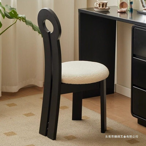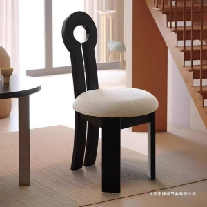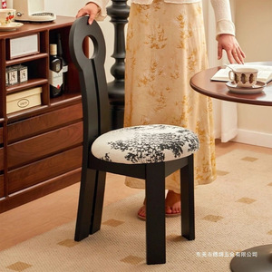 法式实木餐椅中古人鱼钥匙椅子靠背复古侘寂风设计师餐厅化妆凳子