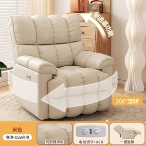 【猫爪皮】米白色/电动坐躺+转摇+手机支架