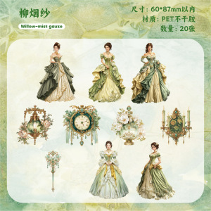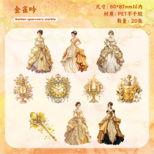 Retro Story贴纸包绮梦裳系列华丽宫廷风手帐百搭素材贴20枚入6款