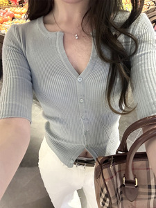 蝶宝嘻 fit check 显身型春夏打底衫针织衫中袖tee显瘦T恤女上衣
