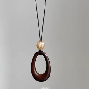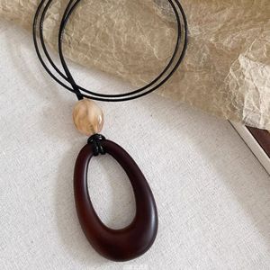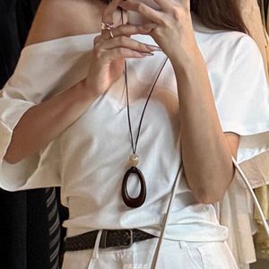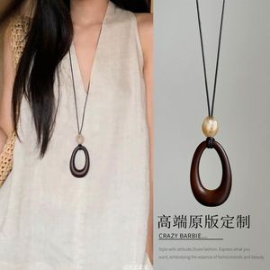 黑皮绳木质椭圆吊坠小众设计感项链女宽轻奢高级感锁骨链颈链配饰
