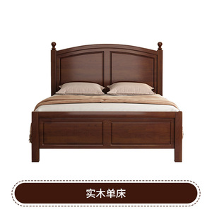 单人实木床现代简约1.2米胡桃色1.5m小户型储物收纳床1米小床