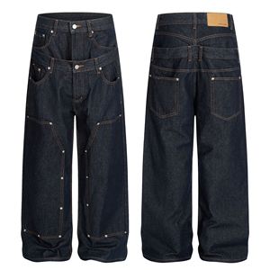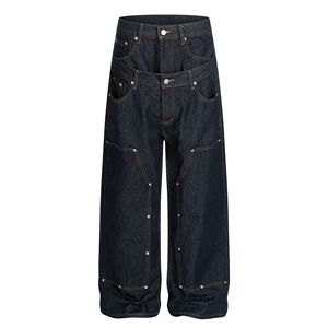 世阔G6852 美式复古原色双腰头工装阔腿牛仔裤男女宽松直筒休闲裤