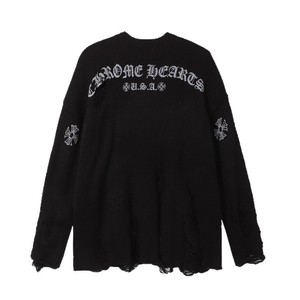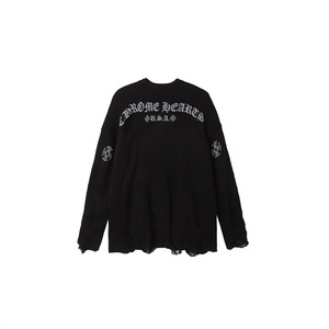 25ss跨境正确版 CH 秋冬新款马蹄梵文针织宽松板型破洞毛衣一件批