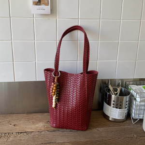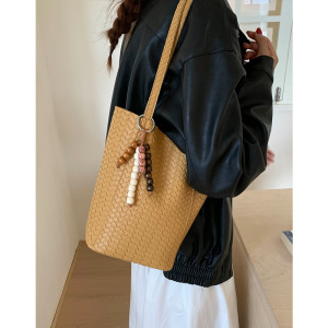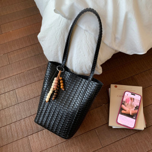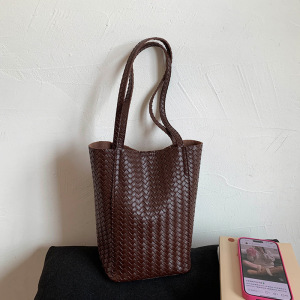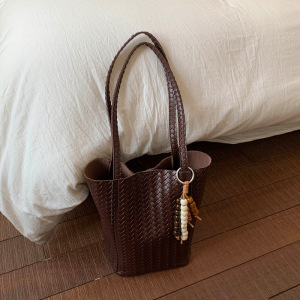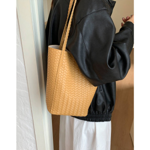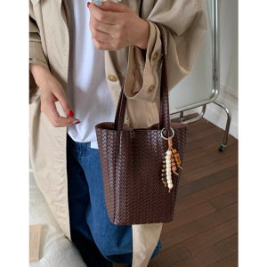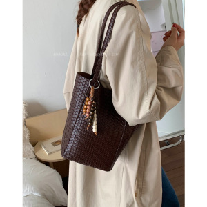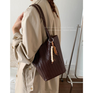 复古棕色编织腋下包包女2025新款秋冬单肩包小众大容量通勤托特包