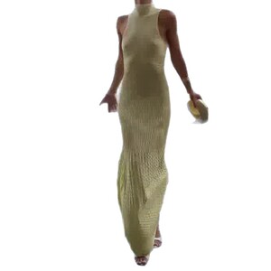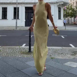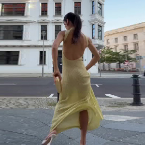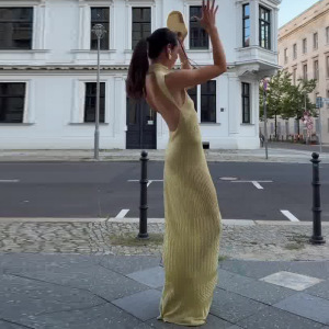2025年夏季新款欧美亚马逊跨境外贸女装露背无袖简约黄色休闲长裙